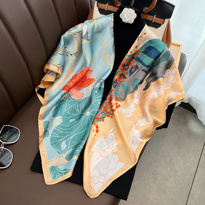 New Chinese style 110 * 10 square scarves with West Lake print silk scarves for women's suits, shirts, and decorative scarves