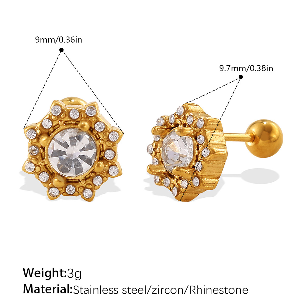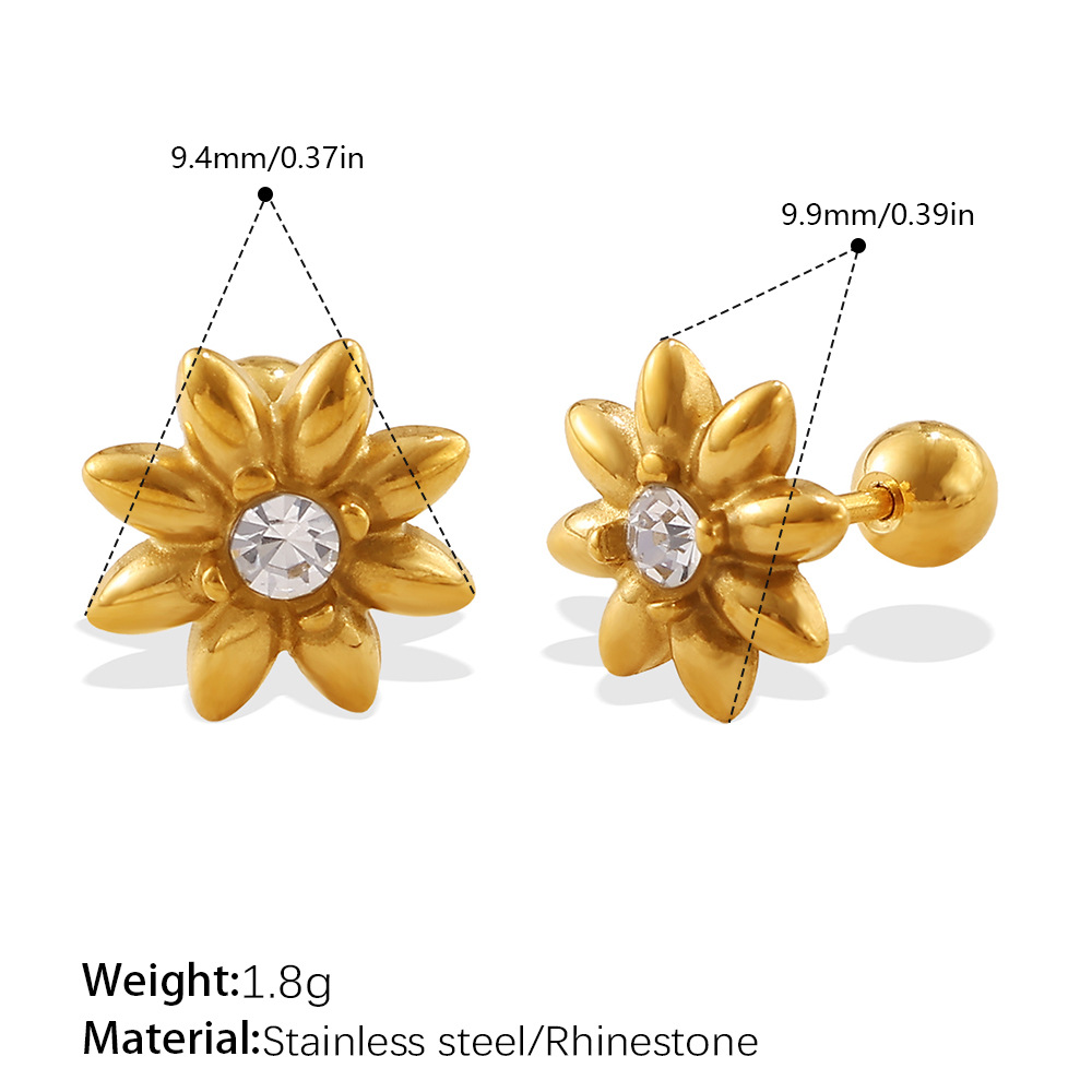 Stud Earrings Stainless Steel Delicate Small Sweet Flower Love Diamond Earrings