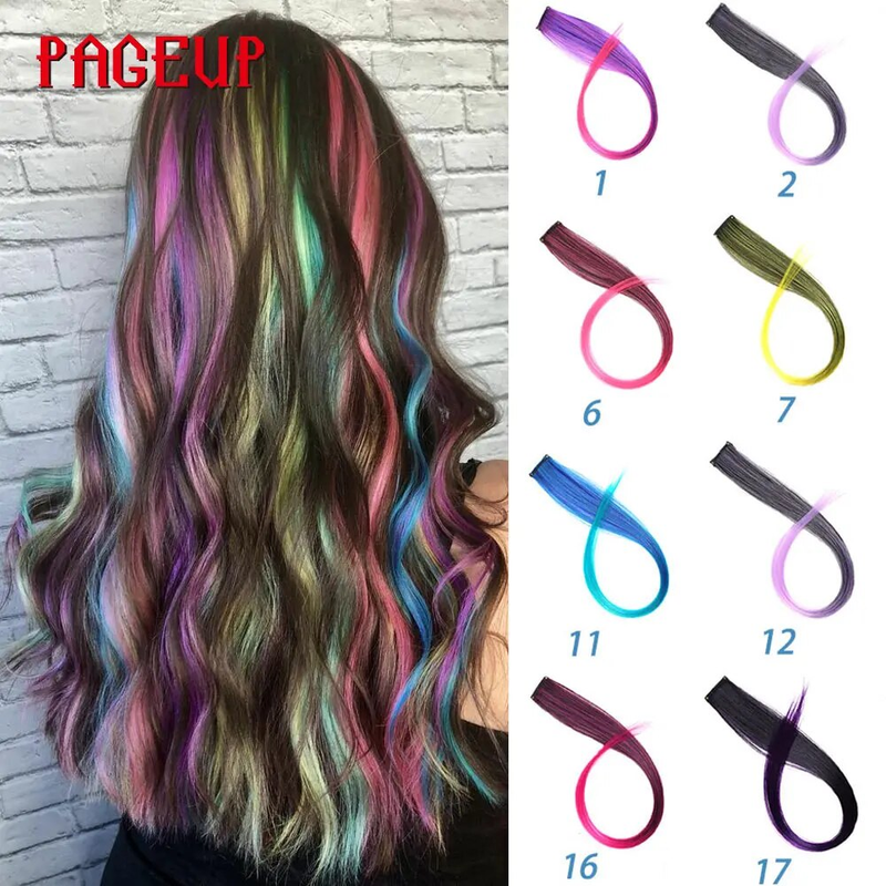 One Piece Rainbow Synthetic Fake Hair Pieces For Women Pageup Long Ombre Hairpiece Blonde Pink Clip In Hair Extensions Invisible