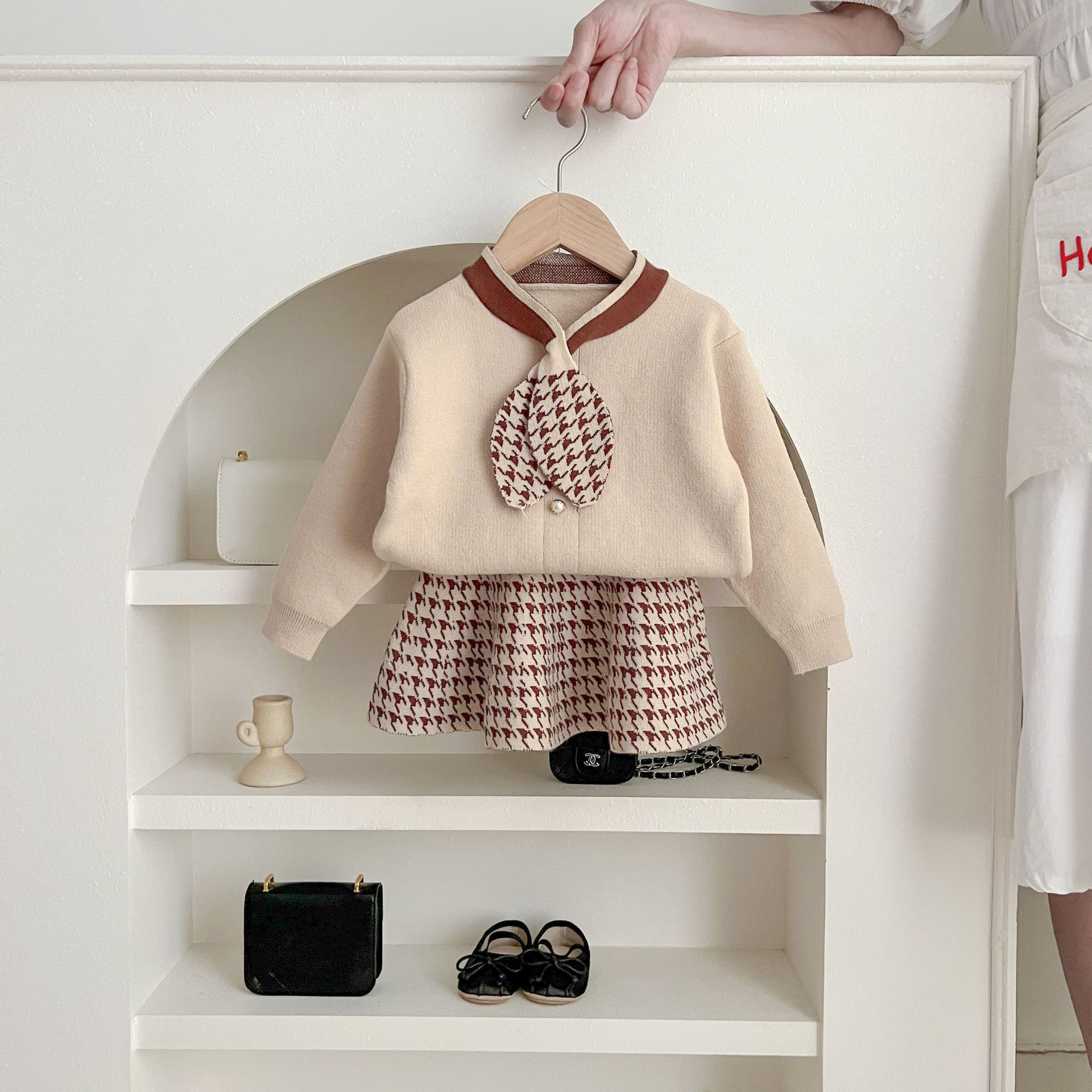 Girls' sweater dress JK college style knitted two-piece set for autumn and winter new baby girls Korean version cardigan, stylish and trendy