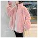 Pink Lamb Wool Coat for Women, Winter Thickened, Petite, High-End Plush Stand Collar Baseball Jacket