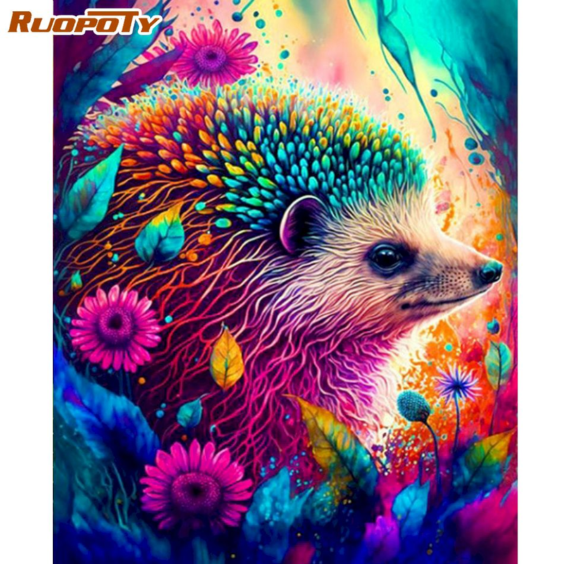 RUOPOTY 40×50CM Maleri efter tal Håndmaling Billede Tegning Farverig Hedgehog Hjem Dekoration Personlig gave