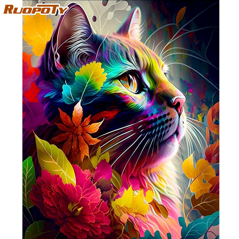 RUOPOTY 40×50CM Painting By Numbers Hand Painting Picture Drawing Lovely Cat Living Room Decoration Gift