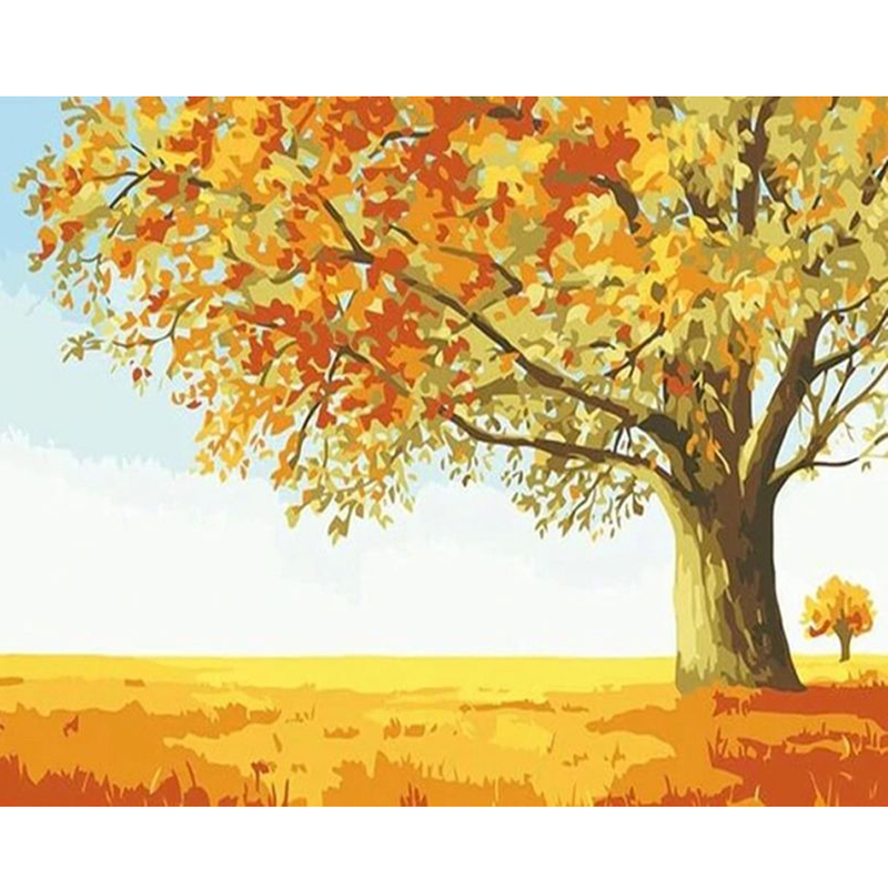 RUOPOTY Oliebillede efter numre-sæt Billedtegning Gyldent efterårslandskab Maleri numre Stueudsmykning