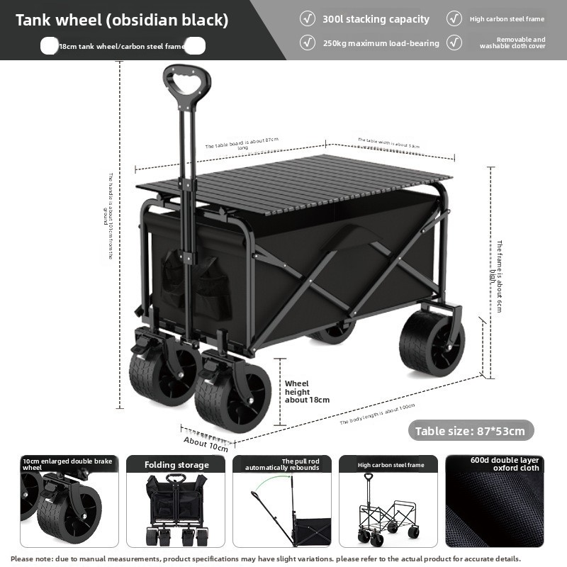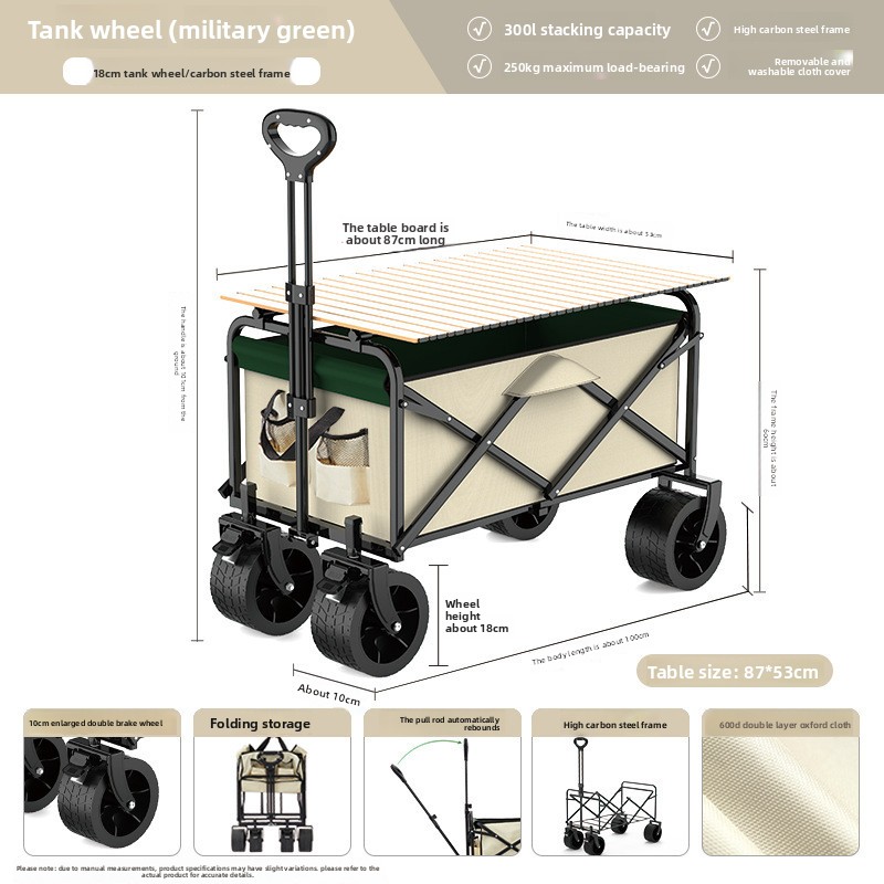 Camp Trailer Foldable Night Market Stall Mobile Hand-Pulled Cart Outdoor Camping Cart Picnic Cart