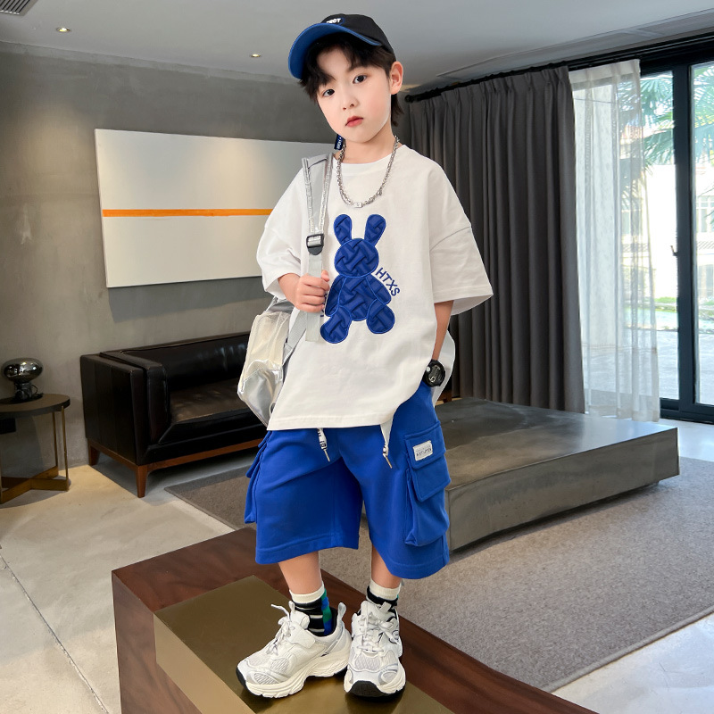 Boys' Summer Dress Set 2024 New Children's Dress Summer Boys' Summer Style Thin Style Sports Big Boy Cool Handsome Trendy