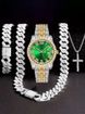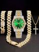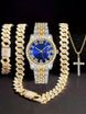 Stand out with this bold and stylish men's hip hop watch set, featuring a dazzling full diamond dial and a matching bracelet & necklace for a complete look.