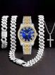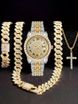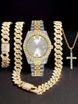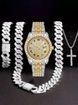 Quartz Watch Set Hip Hop Style Watch With Bracelet And Necklace, Quartz Movement, Stainless Steel Clasp, Mineral Crystal Glass, Round Dial, Alloy Case