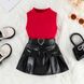 "Toddler Girls' Ribbed Vest & PU Skirt Set – Soft Cotton Play Outfit With Adjustable Waist (90-130cm)"