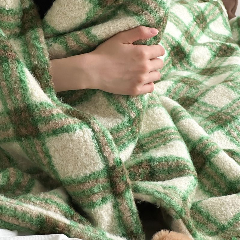 Shearling Loop Fleece Autumn/Winter Warm Blanket Checkered Sofa Bed Foot Blanket