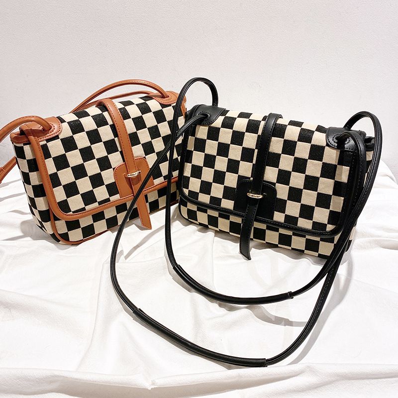 Black and white checkered printed shoulder bag for women, 2023 autumn and winter new trend fashion crossbody bag, simple and stylish small square bag