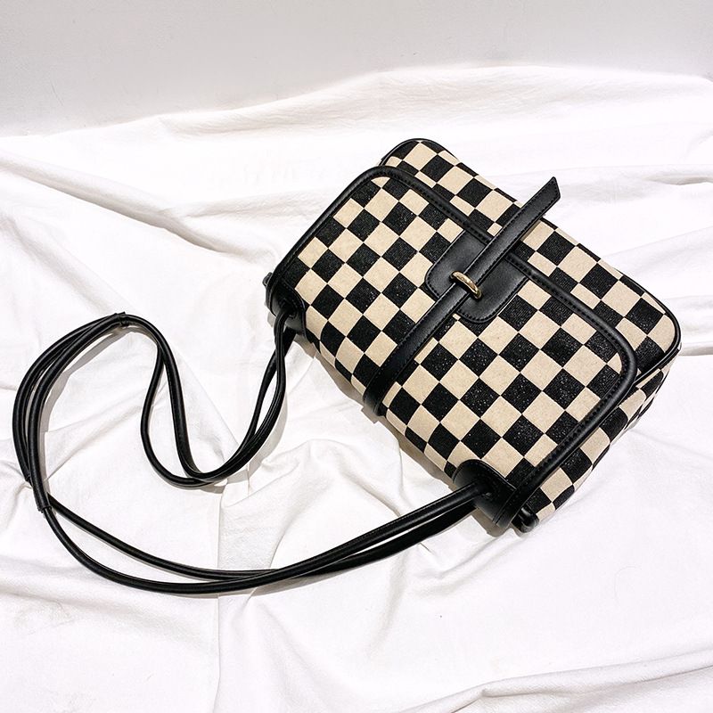 Black and white checkered printed shoulder bag for women, 2023 autumn and winter new trend fashion crossbody bag, simple and stylish small square bag