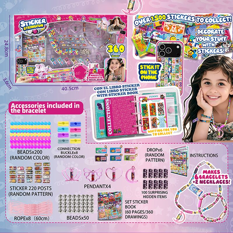 Sticker And Bead Toy:make Sticker Bead Bracelets And Necklaces, Collect Stickers In The Book With 360 Stickers, An Ideal Gift For Kids