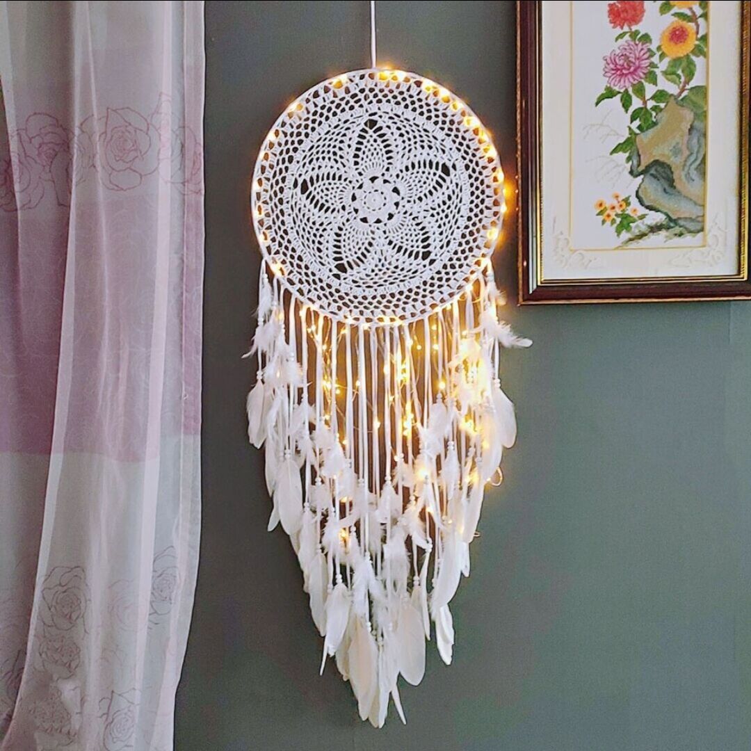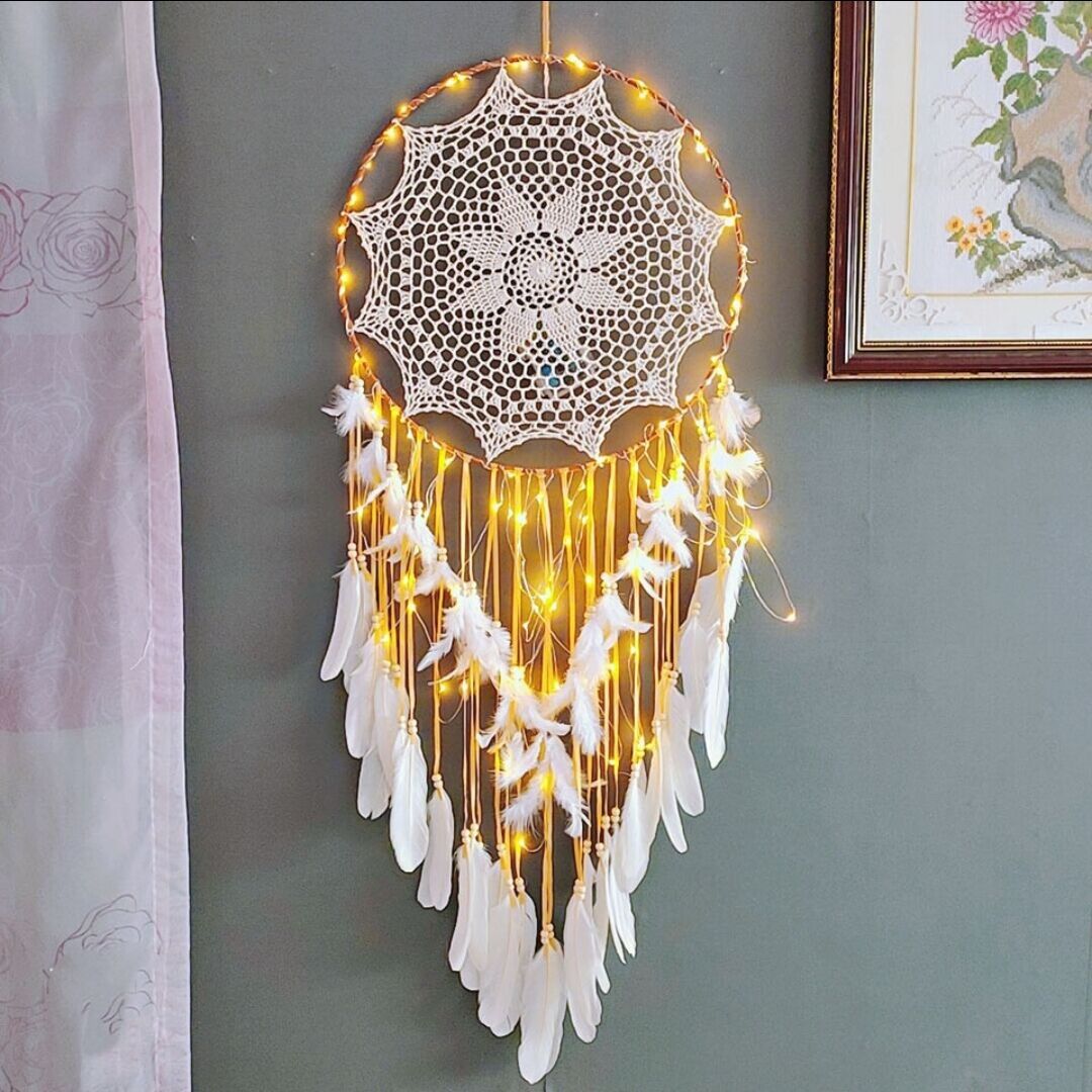 Indian Large Dream Catcher Indoor Creative Hanging Decoration Wedding Decoration Wholesale Feather Pendant Hanging Ornament with Light