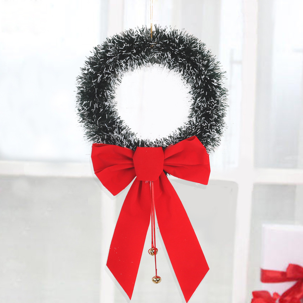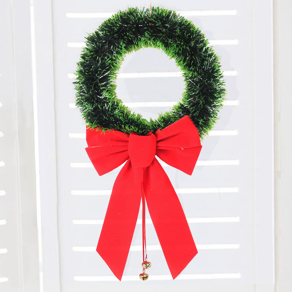 Straight New with Large Bow and Bell Green Vine Ring Christmas Wreath