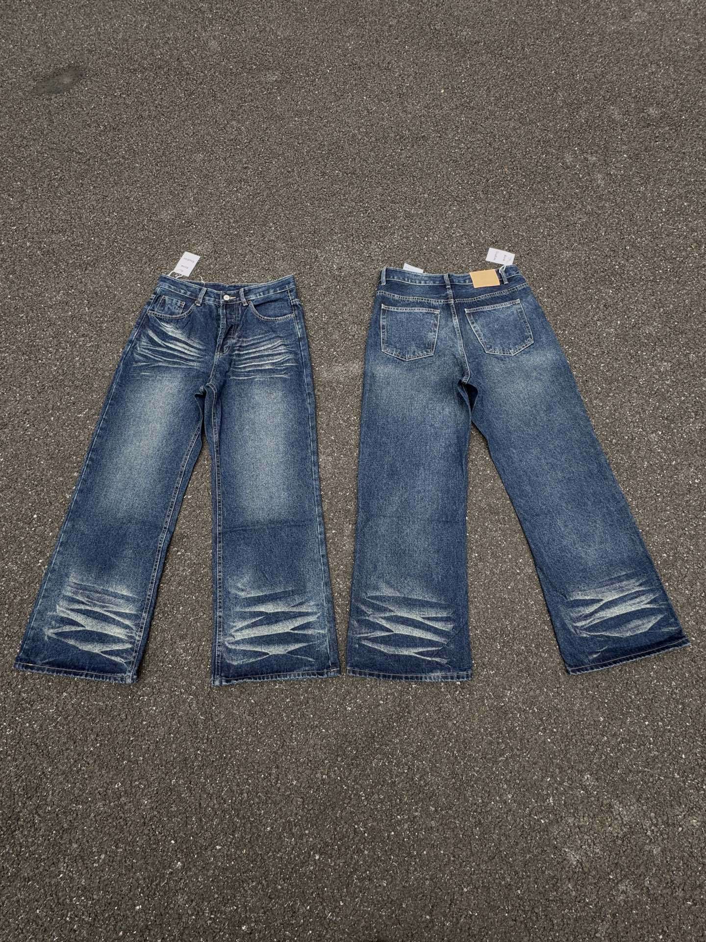 Style Oversized Washed Denim Pants – Baggy Streetwear Jeans With Ripple Effect & Distressed Detailing"