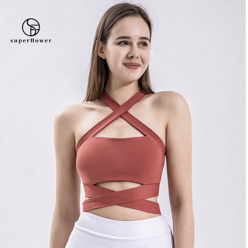 SUPERFLOWER Fashion Yoga Fiess Vest Cross Back Running Svedabsorberende stødsikker BH Top til kvinder