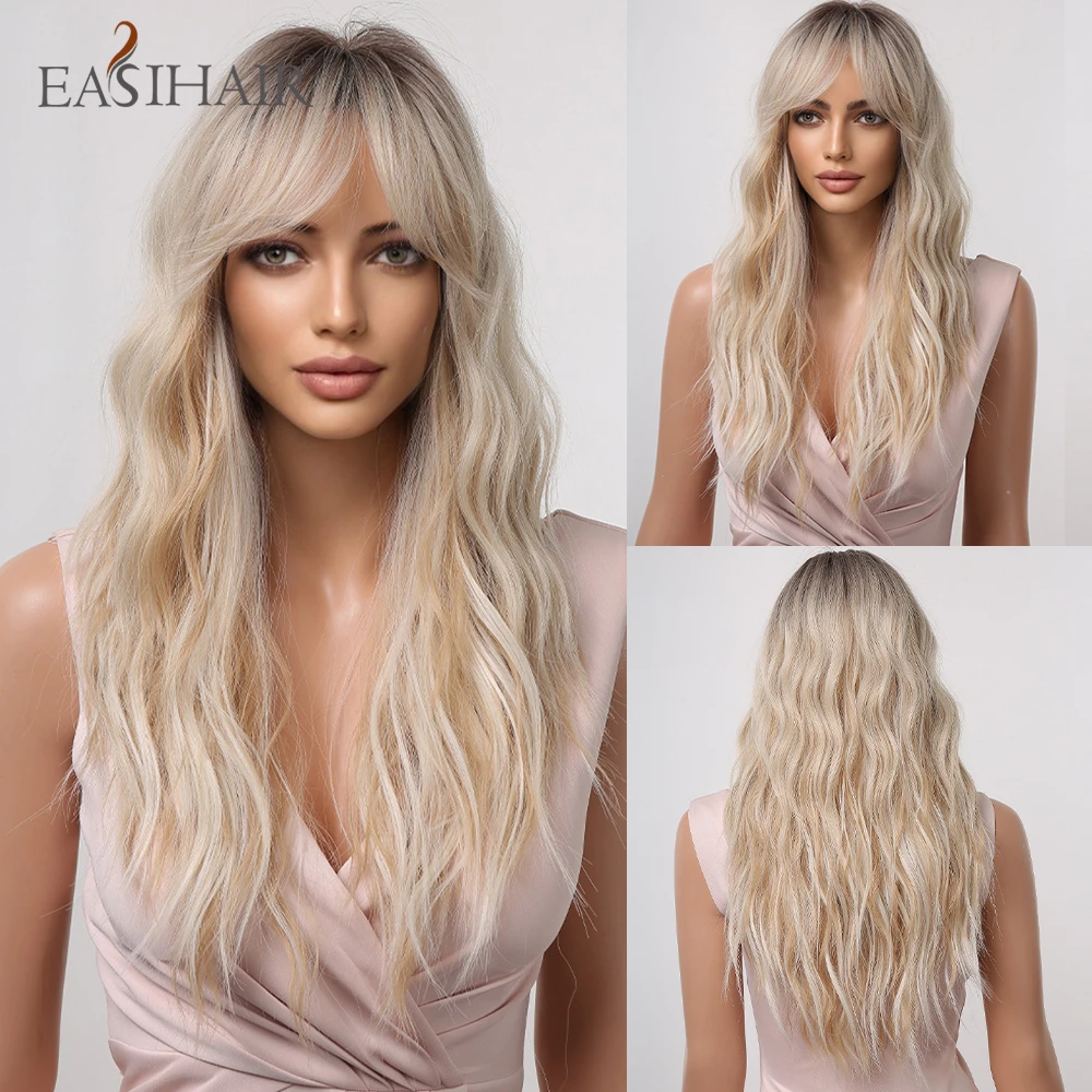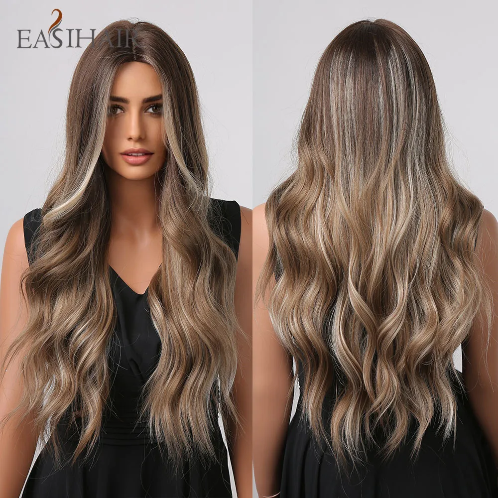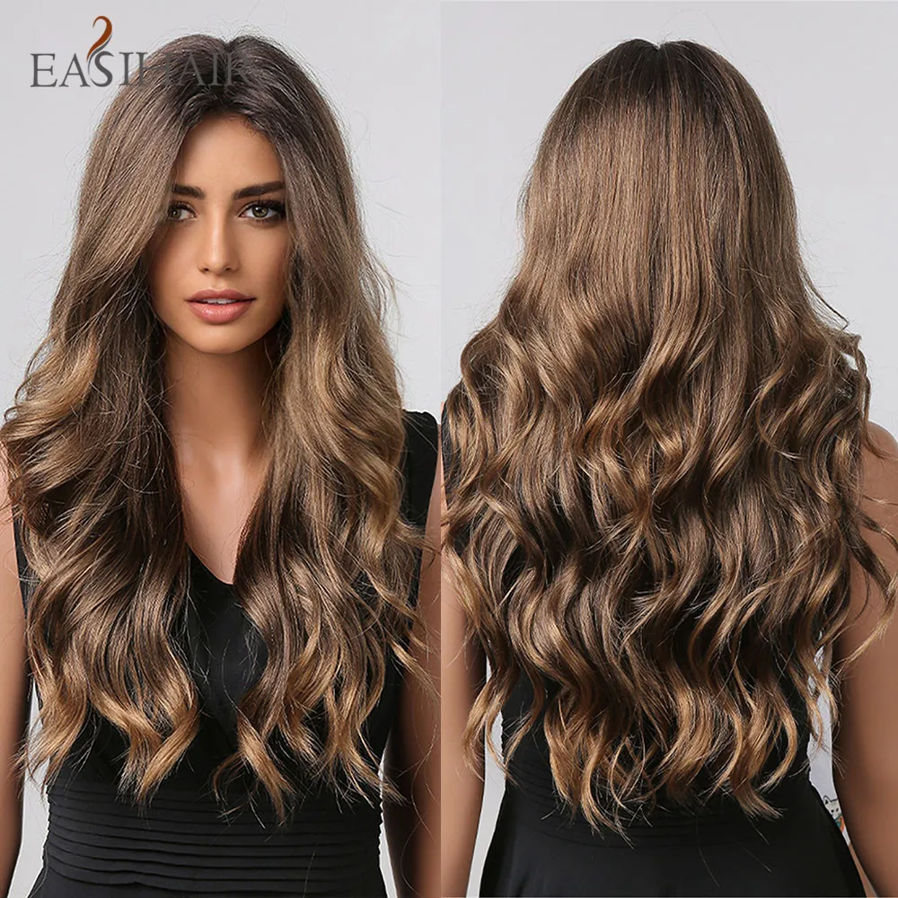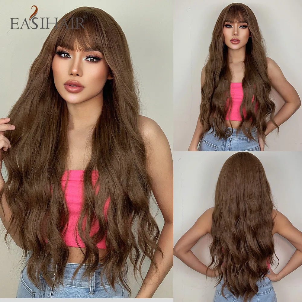 Synthetic Wigs Long Ombre Brown Curly Wave Wigs with Bangs for Afro Women Chocolate Brown Daily Cosplay Hair Wigs Heat Resistant Descriptions SOFT AND COMFORTABLE MATERIAL: 100% Brand new high resistant fiber, brown curly wave long hair wigs with the adjustable cap inside. Very high quality look so natural, not easy getting tangled, super soft and comfortable. MODERN HIGH-STYLISH STYLE: long ombre brown water wave synthetic wigs, amazing full wigs for women, provides a mysterious and bewitching image, you can change your image in 2 minutes, and you can be like celebrity and become a party star. ADJUSTABLE WIG CAP: This long brown ombre wigs comes with breathable soft net within the network make you feel comfortable when you wearing it; the size perfect fit most people [head circumference range 20.5-24.5 inch], it is easy to adjust 2 hooks inside the cap to the correct size to wear it. APPLY FOR MOST OCCASION: This hair wig is great for updating your everyday style or dressing up for a night out, perfect choice for Halloween, daily, concerts, theme parties, weddings, dating, and any other occasion. Product Display Model Show More Style Options