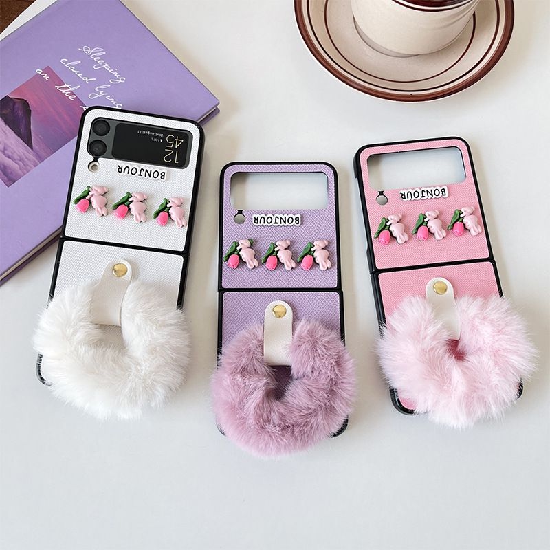 TechGlobe Compatible With Samsung Z 60% Off Foldable Flip Cover Plush Handheld Tulip Leather New Women's Protective Case
