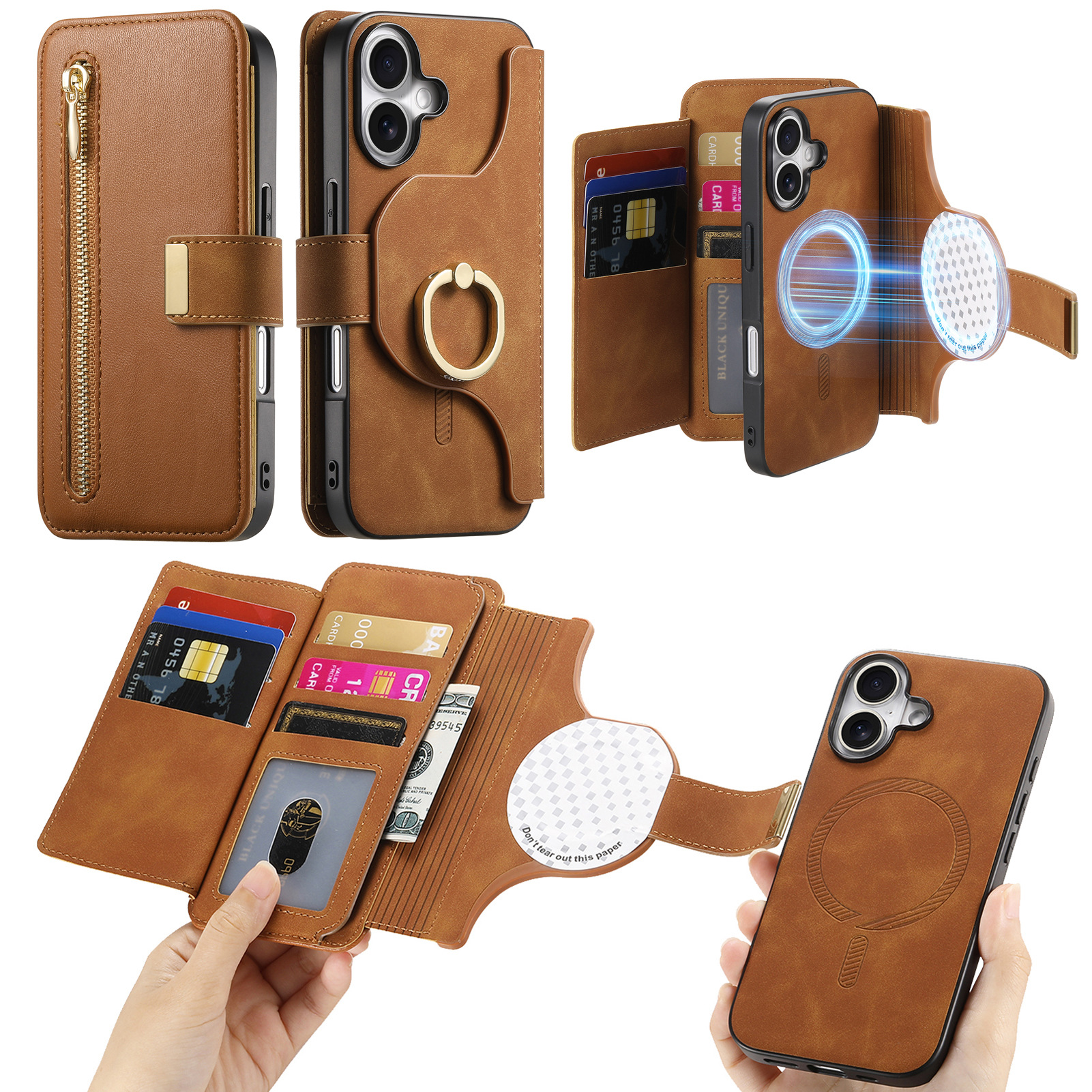 TechGlobe Cross-Border Magnetic Detachable Compatible With IPhone Quick Release 16 Flip Leather Case 15p