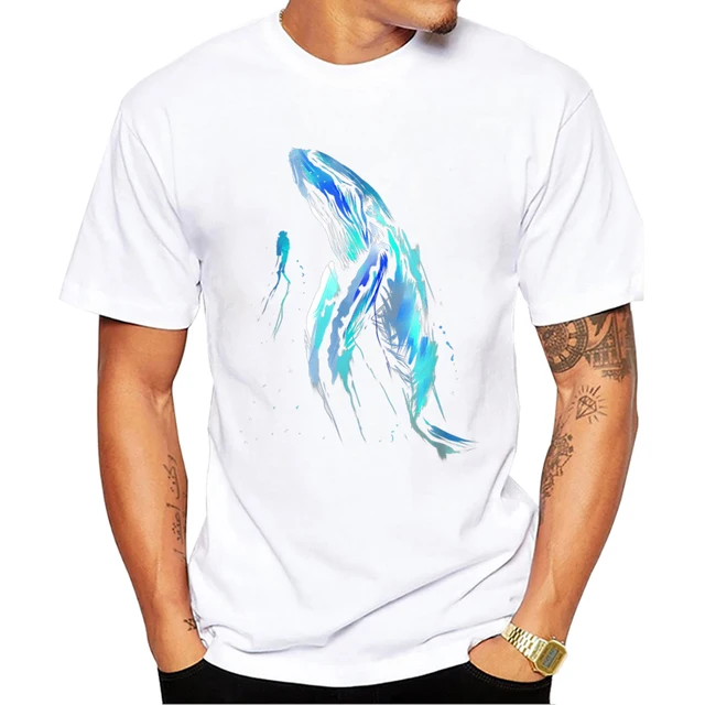 TEEHUB Vintage Swim With Giants Toppe Hvalhajdykkerprint Herre T-shirt O-hals Tøj Kortærmet Herre Casual