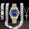 Watch Gift Set Popular Diamond Encrusted Luxury Steel Band Quartz Watch And Diamond Encrusted Hip Hop Cuban Bracelet Matching Watch