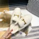 women's plush flat slippers Winter Home and Outdoor Shoes metal decorative design Casual and office mules Large size 41-44