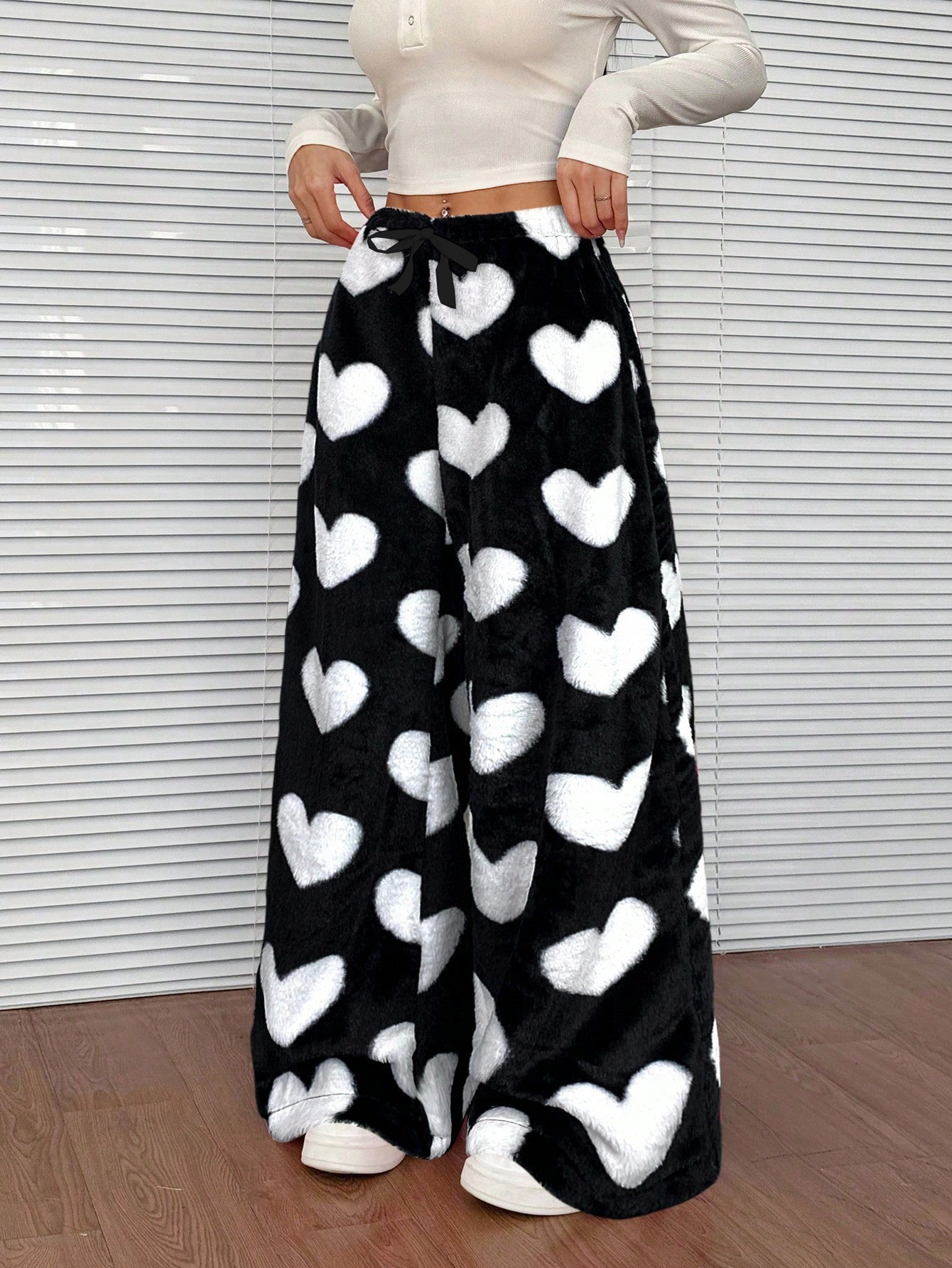 Sweet Mode: Heart-print pair worn with a cropped sweater and mules.
