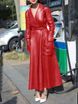 Læderjakke i superlang jakkesæt med krave til kvinder