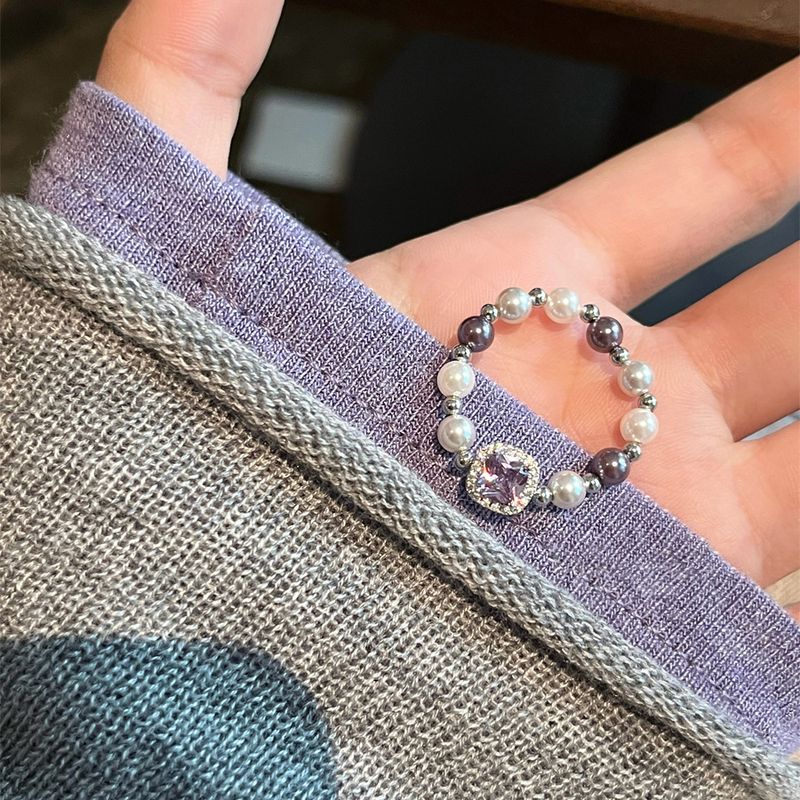 Zircon Pearl Square Elastic French Elegant Fashionable Temperament Index Finger Light Luxury High-end Feel Ring